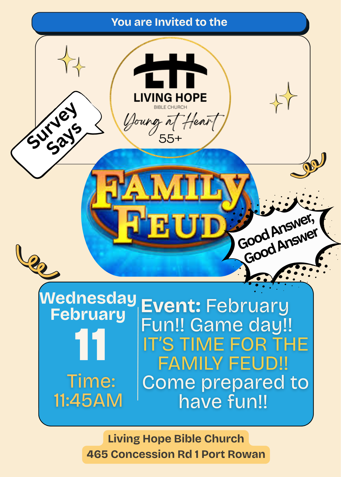 SR Ministry, Young at Heart, is for anyone 55+ who would like to gather together, be encouraged and have some fun. Join us for our monthly events.